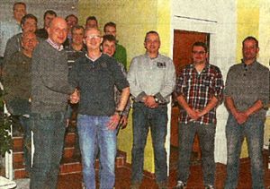 Das Schützenfest für das Jahr 2015 findet vom Samstag 20. Juni, bis zum Montag, 22. Juni, auf dem Hof der Familie Nienhaus-Funke statt. Wachwechsel: Hubertus Rölfing (vorne links) übergibt den Posten des Oberst an Andre Niestegge. Markus Nienhaus (rechts) ist neuer Hauptmann. Foto: Joshua Hermens